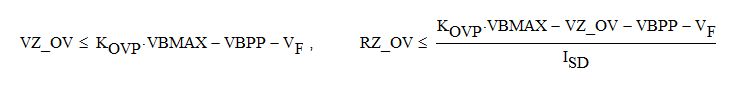 1) 上記の計算で確立された OVP スレッシュホールド (KOVP*VO) は、最大負荷時 (VBMAX) にのみ正確になります。レギュレーションが軽負荷 (VBMIN) で喪失すると、保護レベルはかなり高くなります。誤差は VBMAX – VBMIN の差に比例します。したがって、負荷による VB の変化は最小に抑える必要があります。